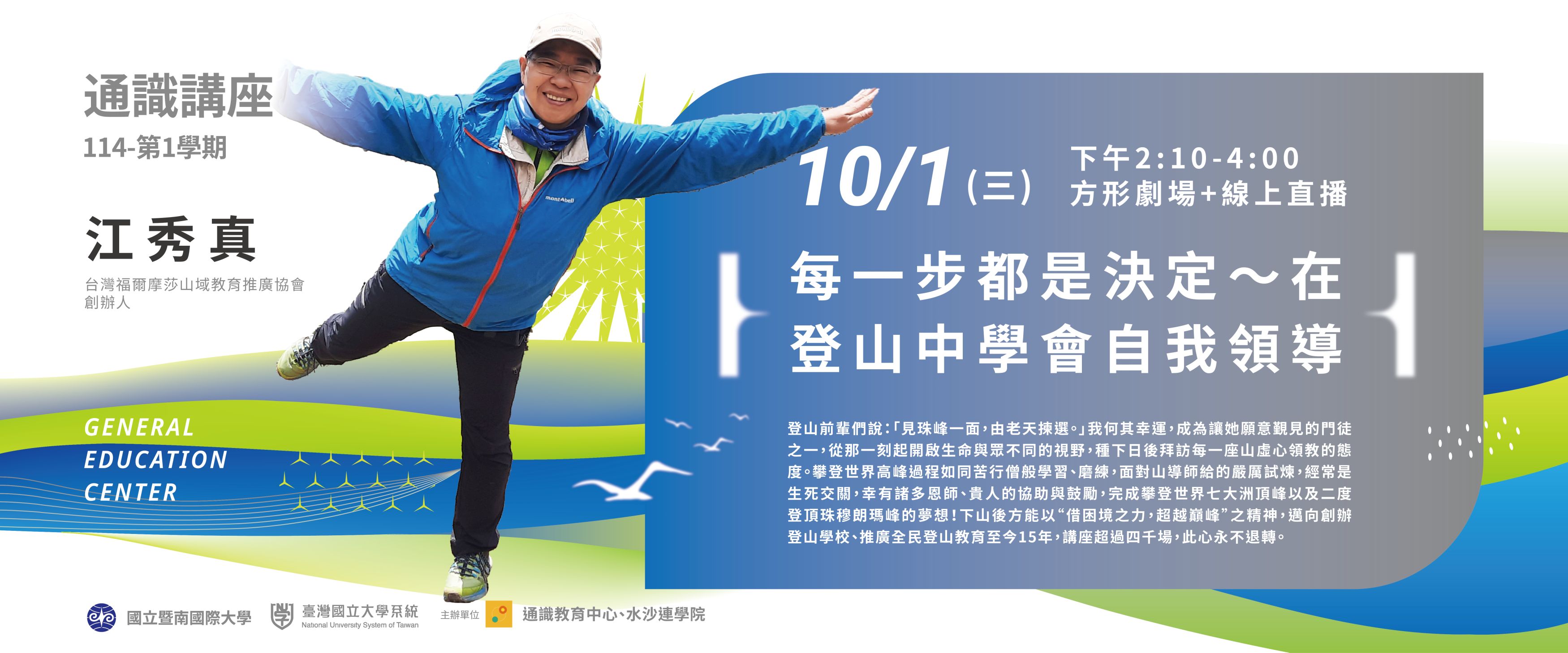【轉知活動】NUST名人講座:每一步都是決定~在登山中學會自我領導